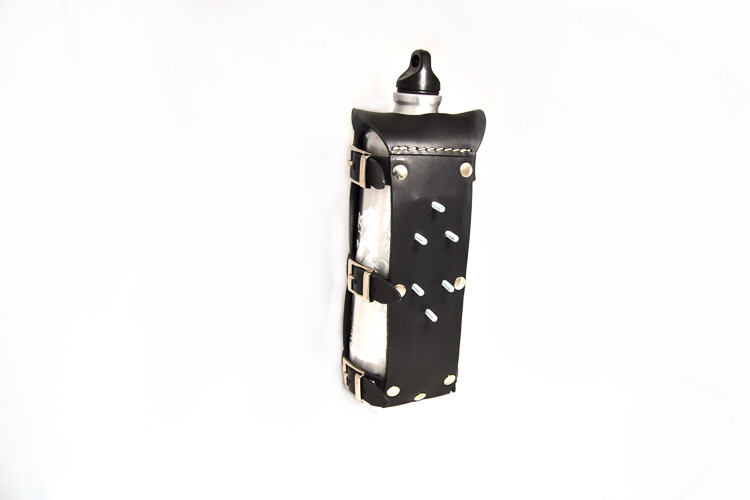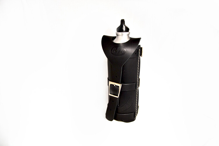 Lieferumfang: Flaschenhalter aus Echtleder incl. Anbaukit.